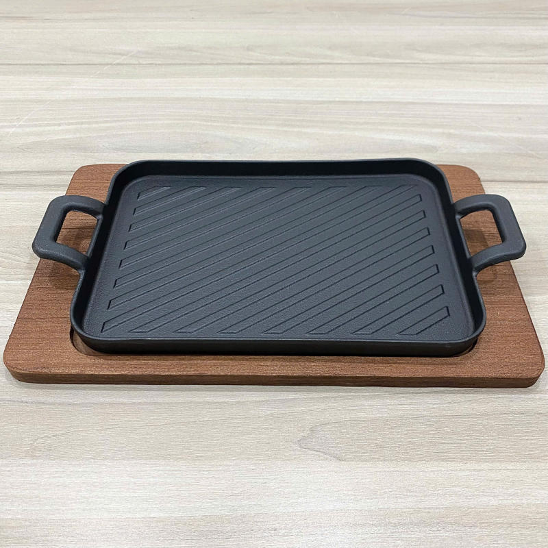Khay gang chữ nhật 2 quai đế gỗ YZ-9010
